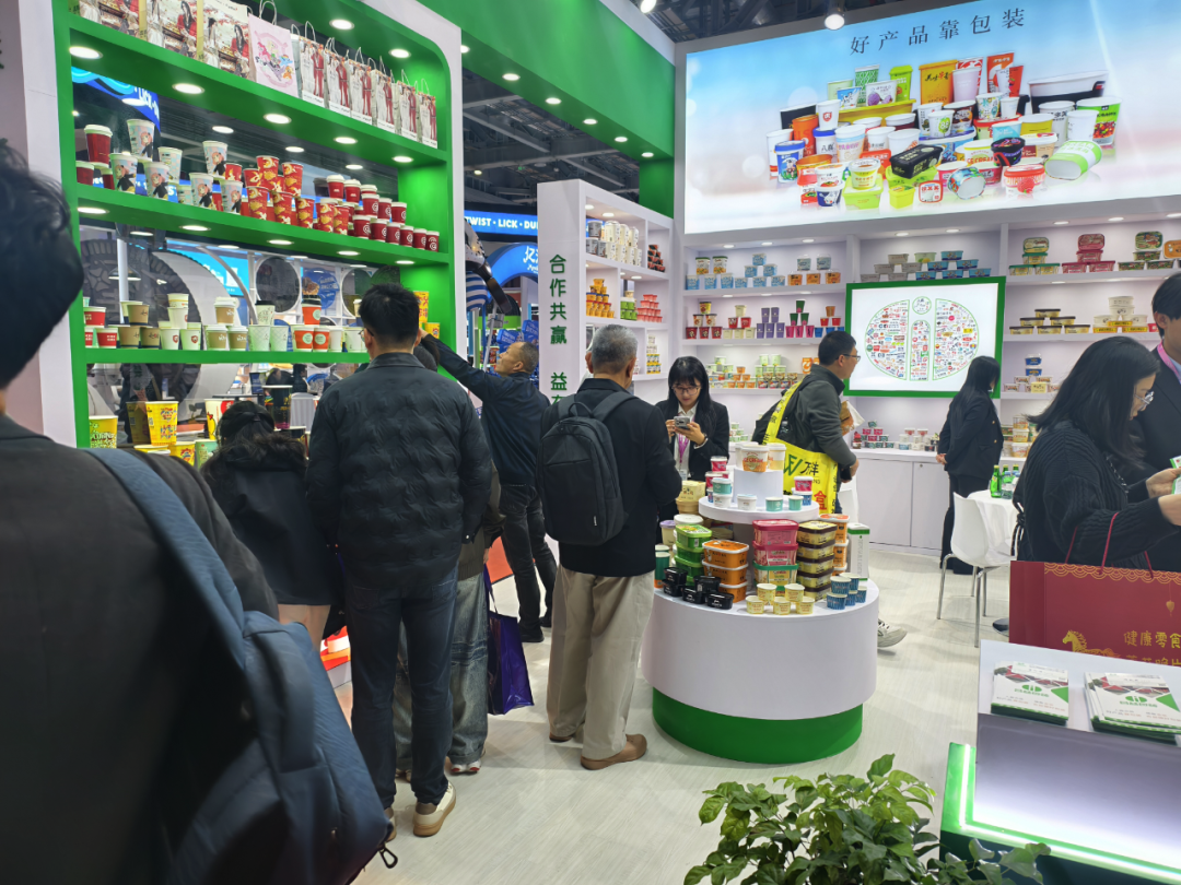 除此之外,纸杯、纸碗系列同样备受关注。选用高规格食品级原纸+优质防水防油涂层,质地挺括耐用、安全无异味,兼具良好隔热性与稳固承托力。设计简约精致、适配多种餐饮场景,既符合当下绿色环保趋势,又能提升品牌形象与用餐体验,凭借实用性与高颜值成为展会现场热门之选。
